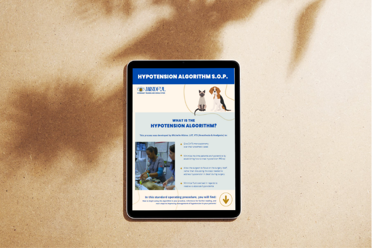 Following this standard operating procedure can elevate patient care by providing a preoperative plan to combat intraoperative hypotension by means of an algorithm based on current AAHA recommendations.